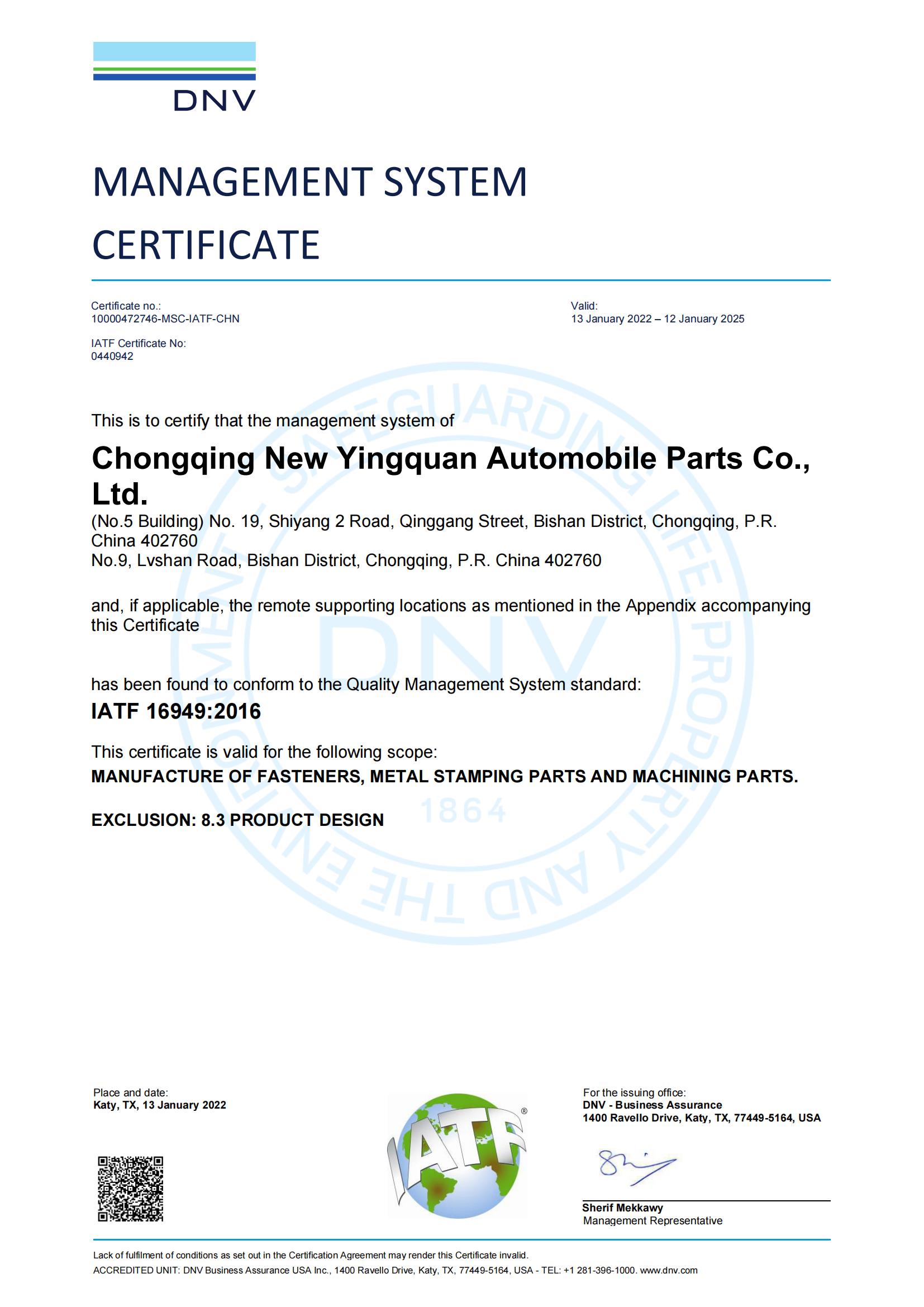 IATF 16949:2016 認(rèn)證企業(yè)